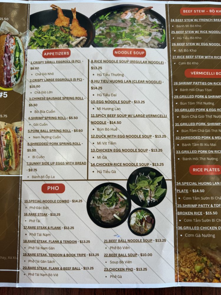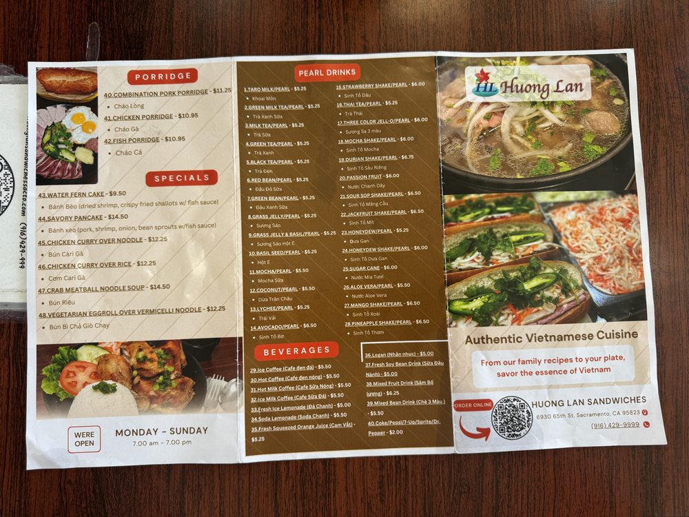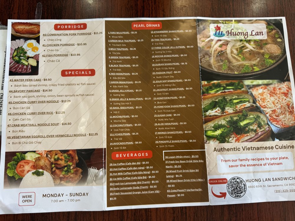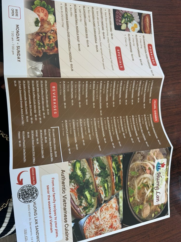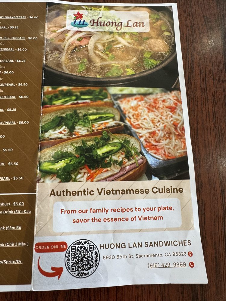 Introducing the menu at Huong Lan Sandwiches, a popular Vietnamese eatery in Sacramento, offering a variety of dishes with options for takeout, reservations, and catering. Known for their delicious banh mi sandwiches, Huong Lan impresses customers with their Grilled Pork #7 Sandwich and cold cut combo. The quality of their ingredients, including flavorful meat and pate, sets them apart as a top choice for quick and affordable meals. Whether craving nem nuong cuon, pho, or rice plates, customers always find satisfaction at Huong Lan. With a cozy atmosphere, friendly service, and consistent food quality, this spot remains a favorite for both locals and visitors seeking authentic Vietnamese cuisine. Enjoy a taste of Vietnam at Huong Lan Sandwiches in Sacramento.